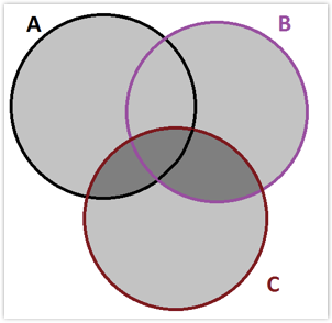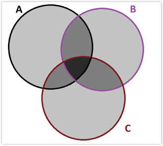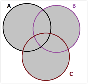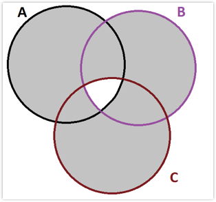 \[\begin{aligned} P(A\cup B \cup C) & = P(A) + P(B) + P(C) \\ & - P(A\cap B) - P(A\cap C) - P(B\cap C) \\ & + P(A\cap B\cap C) \end{aligned} \]